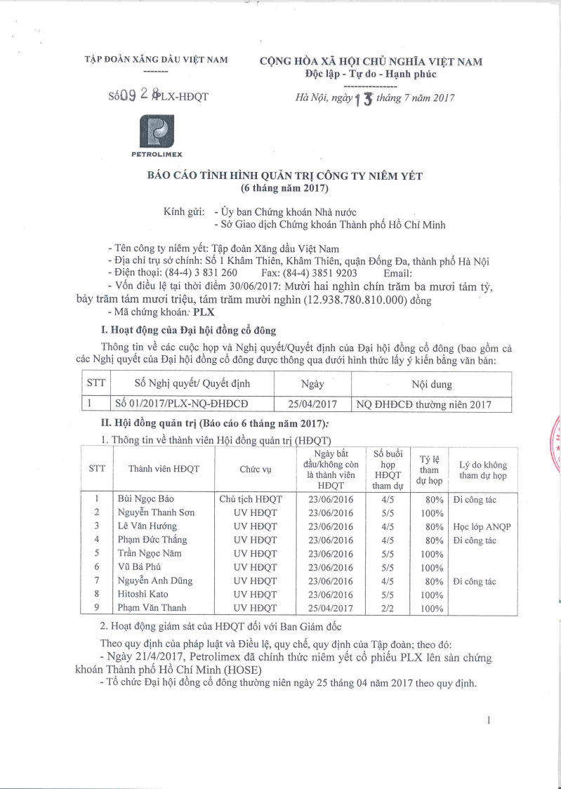 Báo cáo tình hình quản trị Công ty niêm yết 6 tháng năm 2017